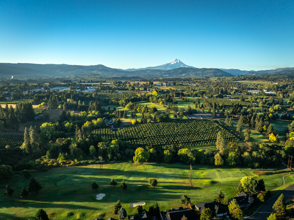 We are a 55 and older residential community of 18 modern units, set atop a scenic bluff overlooking Mt. Hood (11,249 ft.), orchards, the Indian Creek golf course, and the magnificent rolling hills of the Columbia Gorge region.